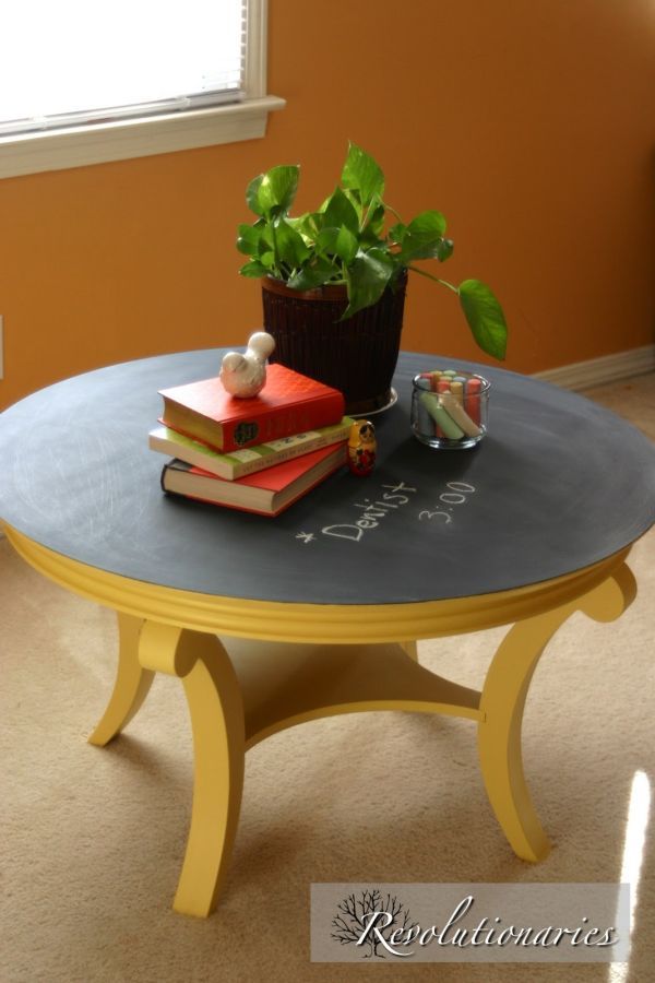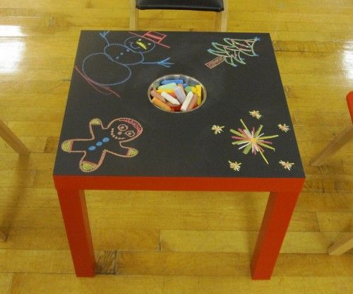 Celebrele masute de cafea Ikea vopsite cu vopsea de tabla scolara pot fi o adevarata comoara pentru camera copiilor. Cei mici pot scrie si desena pe ea de nenumarate ori pentru a-si dezvolta imaginatia. Vei scapa astfel de tentatia lor de a scrie pe mobila sau de a desena pe pereti.