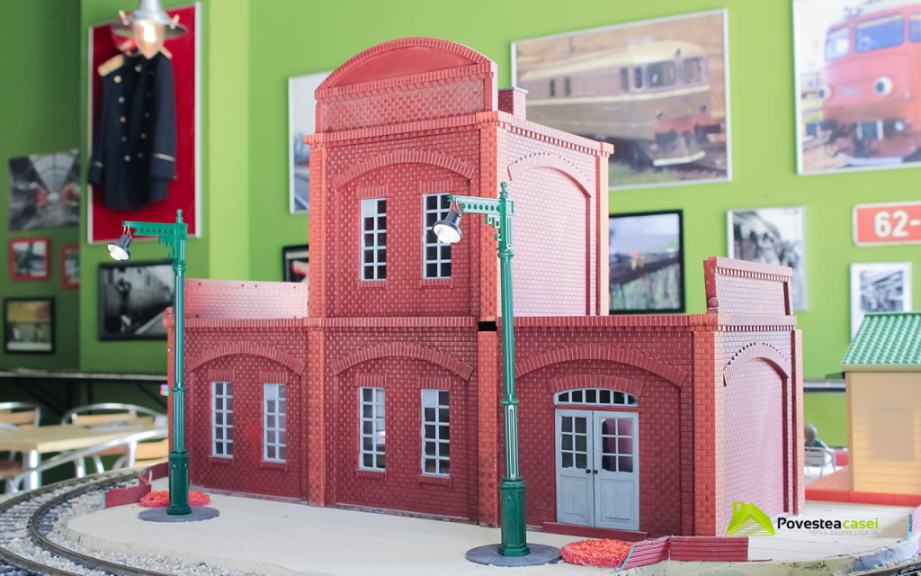 "Pentru amenajarea interioara am mers pe o combinatie de lemn cu metal, cu scopul de a crea o atmosfera industriala de depou, care in acelasi timp sa fie calda si primitoare. De asemenea estacada si mesele pe care circula trenuletele sunt din OSB cu suporti de metal."