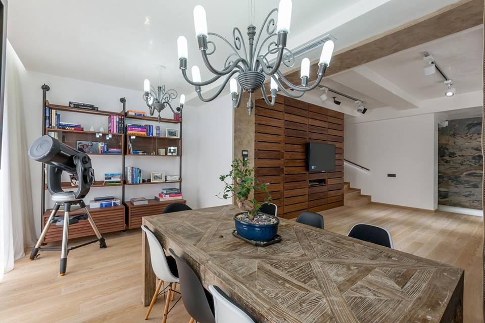 Cand am gandit amenajarea ne-am concentrat pe designul peretilor si luminilor si pe elementele pe care le dorim in spatiu, in acest caz lemnul si piatra. Pornind de la aceste elemente am folosit tapet din piatra, mozaic din lemn, finisaj de stucco, krion pentru bai. Pentru a incalzi si echilibra atmosfera am introdus lemnul de nuc, pielea si catifeaua.