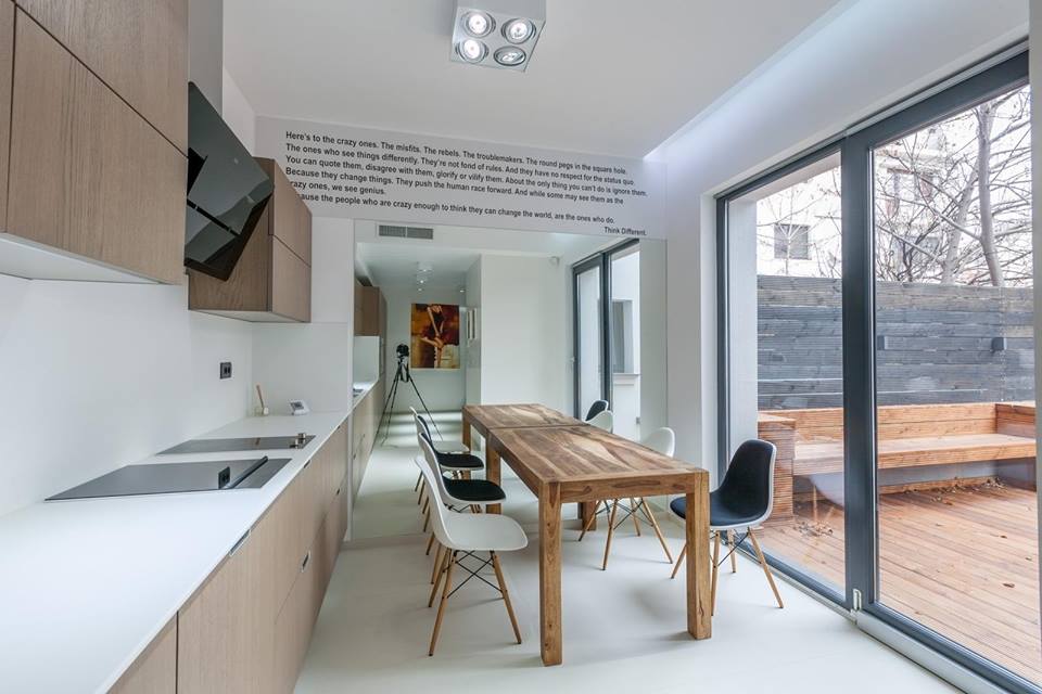 „Am recreat universul urban contemporan in cei 360 mp construiti pentru o casa de parinti tineri. Din punctul nostru de vedere nu exista design fara functionalitate, sunt intrepatrunse. Am folosit designul interior pentru a obtine un produs cat mai util pentru proprietarul casei, pentru a se bucura de cat mai mult spatiu liber si luminos.