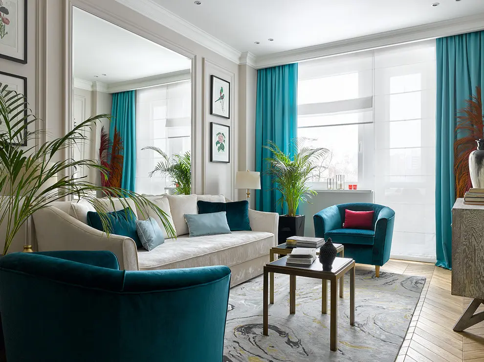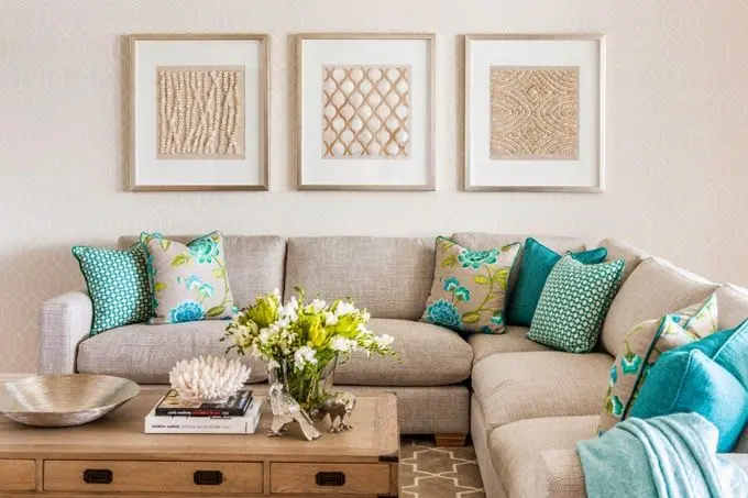 Daca va doriti ca turcoazul sa fie culoarea de accent, atunci e bine sa repartizati elementele in intreaga camera in locul gruparii lor intr-un singur loc.