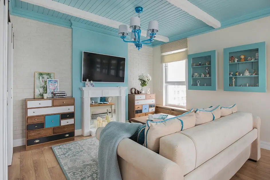 Orice strop de culoare in decorul livingului este binevenit. Si pentru asta am ales turcoazul care prin trasaturile sale ne duce cu gandul la exotic, la apa marii, la vacanta, la relaxare. Este o nuanta placuta, curajoasa si vibranta in acelasi timp potrivita pentru a fi introdusa in decor. Poate fi folosita intr-o varietate de stiluri, ambiante si influente.