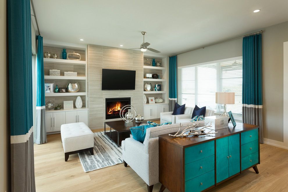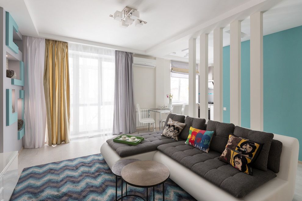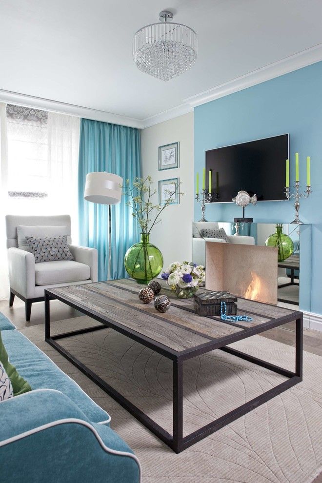 Nuantele deschise de turcoaz se pot folosi pentru a zugravi peretii din camera de zi. Pentru a avea o legatura intre elemente, includeti si alte obiecte sau decoratiuni in nuante asemanatoare. Un abajur, un scaun otoman, tapiteria de la fotolii sau poate un tablou abstract in care turcoazul este predominant, iata doar cateva exemple in acest sens.