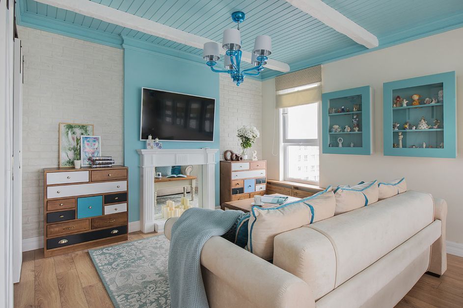 Orice strop de culoare in decorul livingului este binevenit. Si pentru asta am ales turcoazul care prin trasaturile sale ne duce cu gandul la exotic, la apa marii, la vacanta, la relaxare. Este o nuanta placuta, curajoasa si vibranta in acelasi timp potrivita pentru a fi introdusa in decor. Poate fi folosita intr-o varietate de stiluri, ambiante si influente.