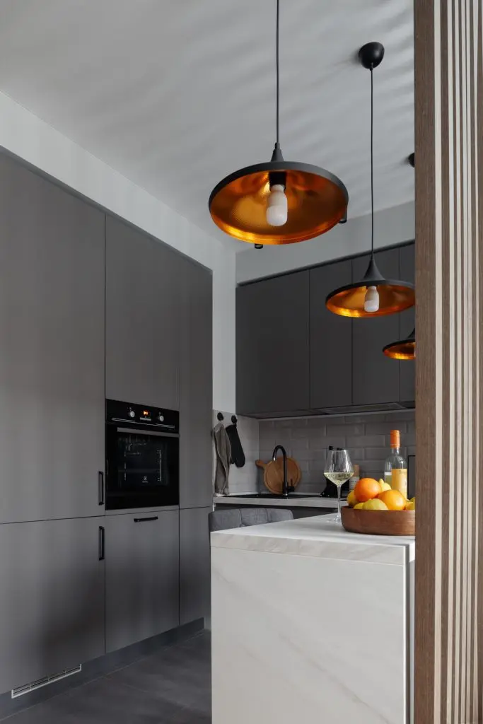 Toate electrocasnicele sunt incorporabile iar pentru mobilier au optat pentru manere frezate, punand accent pe o mentenanta cat mai usoara a mobilierului si accesoriilor.