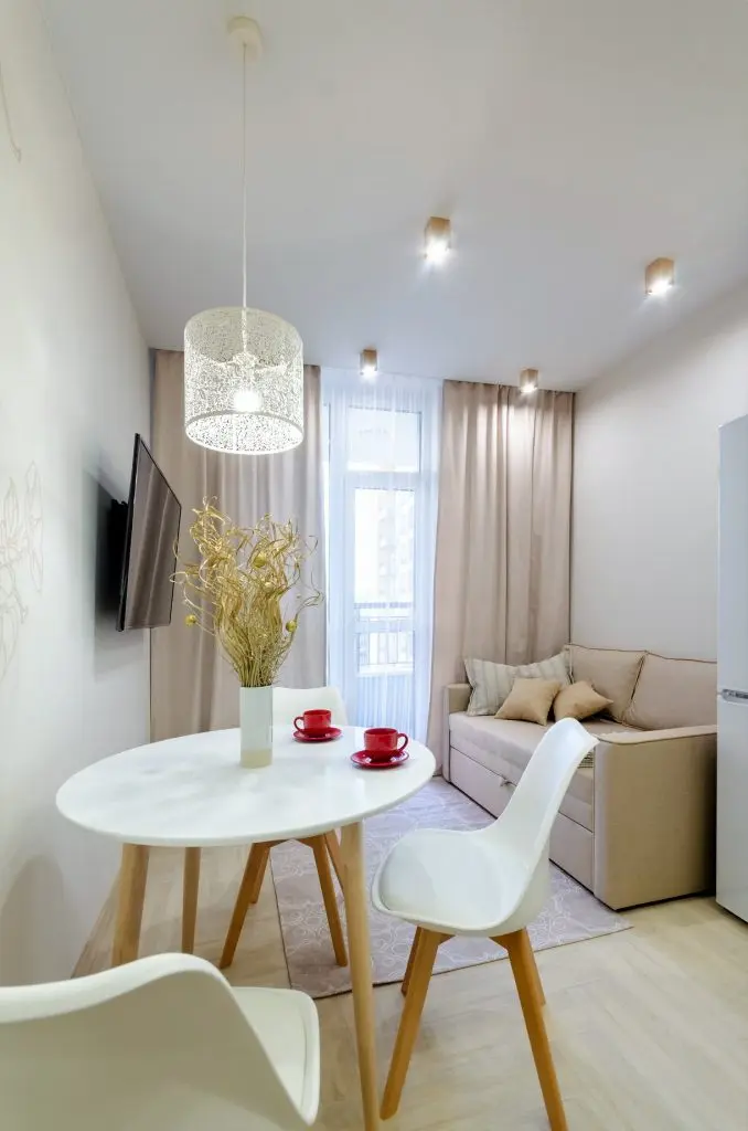 Desi suna putin (masurat in metri patrati), suprafata acestui apartament acopera necesarul zonelor unei locuiri confortabile si pline de inspiratie pentru un profesor care lucreaza o buna parte din timp de acasa.