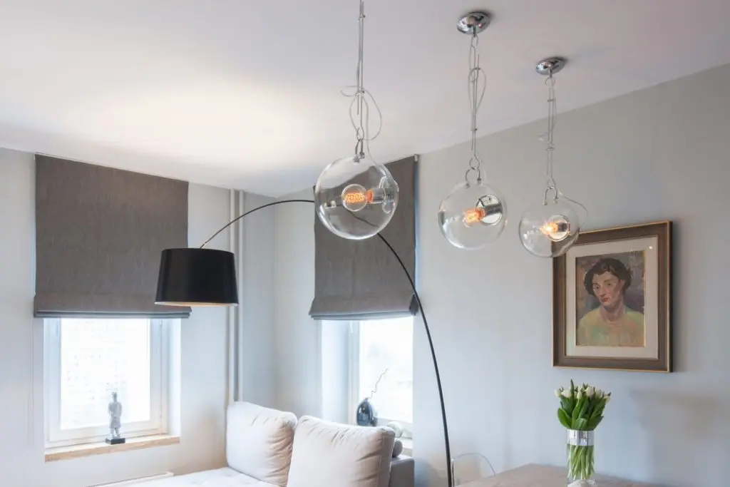 O alegere inspirata corpuri de iluminat tip boluri cu becuri retro, cu filament Edison pentru a pune in evidenta spatiul de luat masa