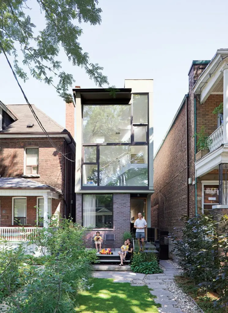 Arhitectul a proiectat si construit o cladire moderna din sticla si caramida, mult mai ingusta decat modelul caselor din imprejurimi. Am fost surprins de faptul ca proprietarii au ales acest loc atat de mic, spune Donald Chong. Cand a vazut-o prima oara ar ramas putin contrariat, mai ales ca pe teren se afla o casa subreda de 75 de metri patrati, cea mai veche si bizara cladire de pe strada.