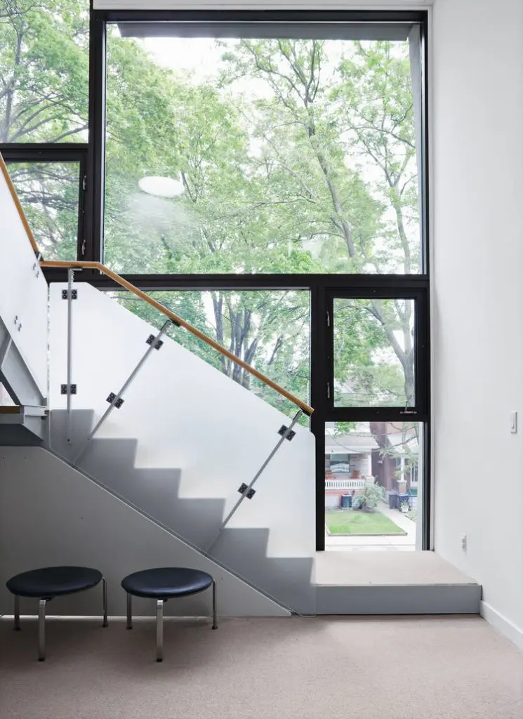 Majoritatea familiilor din acea zona, atunci cand se decid sa-si construiasca o casa aleg de obicei constructii solide din caramida, cu niste curti pe masura. Nu este cazul si aici. Arhitectul a proiectat si construit o cladire moderna din sticla si caramida, mult mai ingusta decat modelul caselor din imprejurimi.
