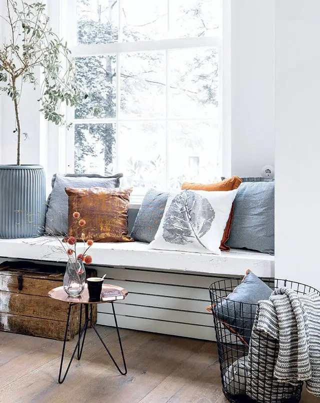Daca peretii casei sunt grosi, iar pervazul este adanc, poti amenaja foarte simplu un colt mic si cochet pentru lectura: plaseaza cateva perne moi si pufoase, cateva decoratiuni si eventual flori de sezon. In cazul in care exista un calorifer sub geam, monteaza peste el o placa de lemn.