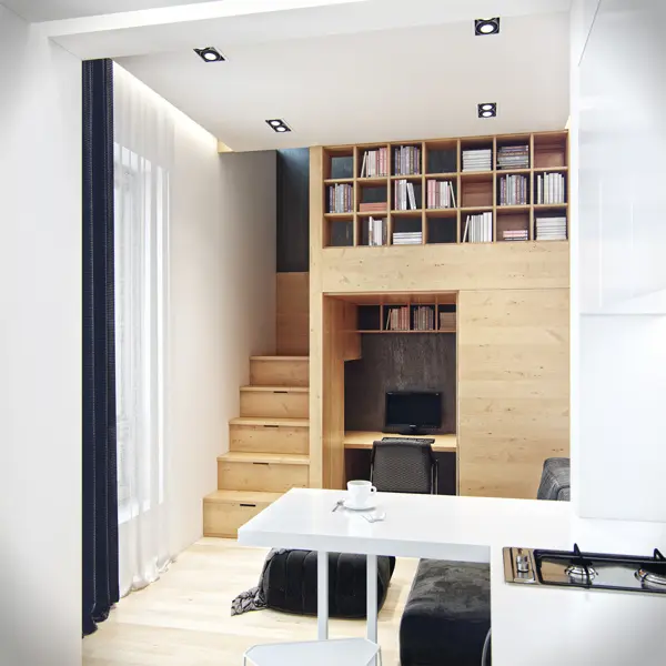 Deschide Galeria Care a fost solutia pe care a gasit-o arhitectul? A creat si amenajat acest minunat loft la etajul superior al unei cladiri vechi, loft care nu are decat 20 de metri patrati, fiind superb amenajat, iar lemnul este elementul principal al designului interior.