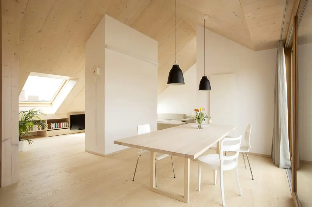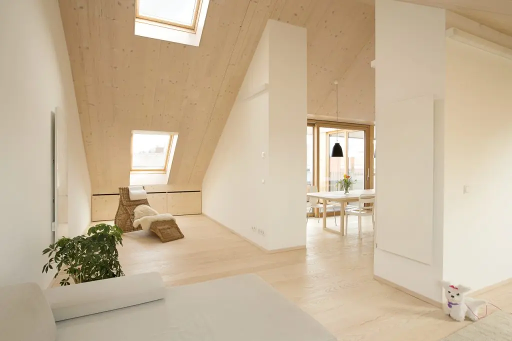 Aceasta mansarda demonstreaza cat de multa luminozitate poate sa radieze lemnul in relatie cu deschiderile oferite de ferestrele de mansarda V EL UX. Sentimentul pe care il ai cand intri in acest apartament, daca s-ar putea descrie in cuvinte, ar fi ca „atingi libertatea”.
