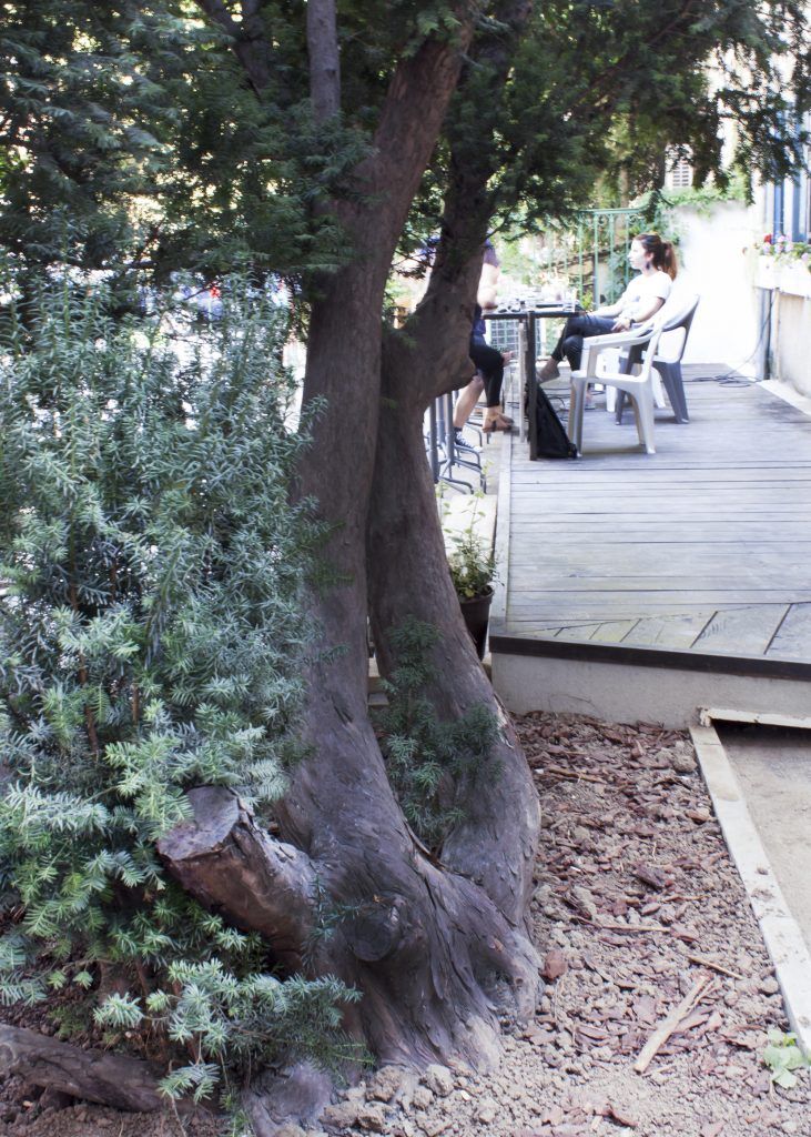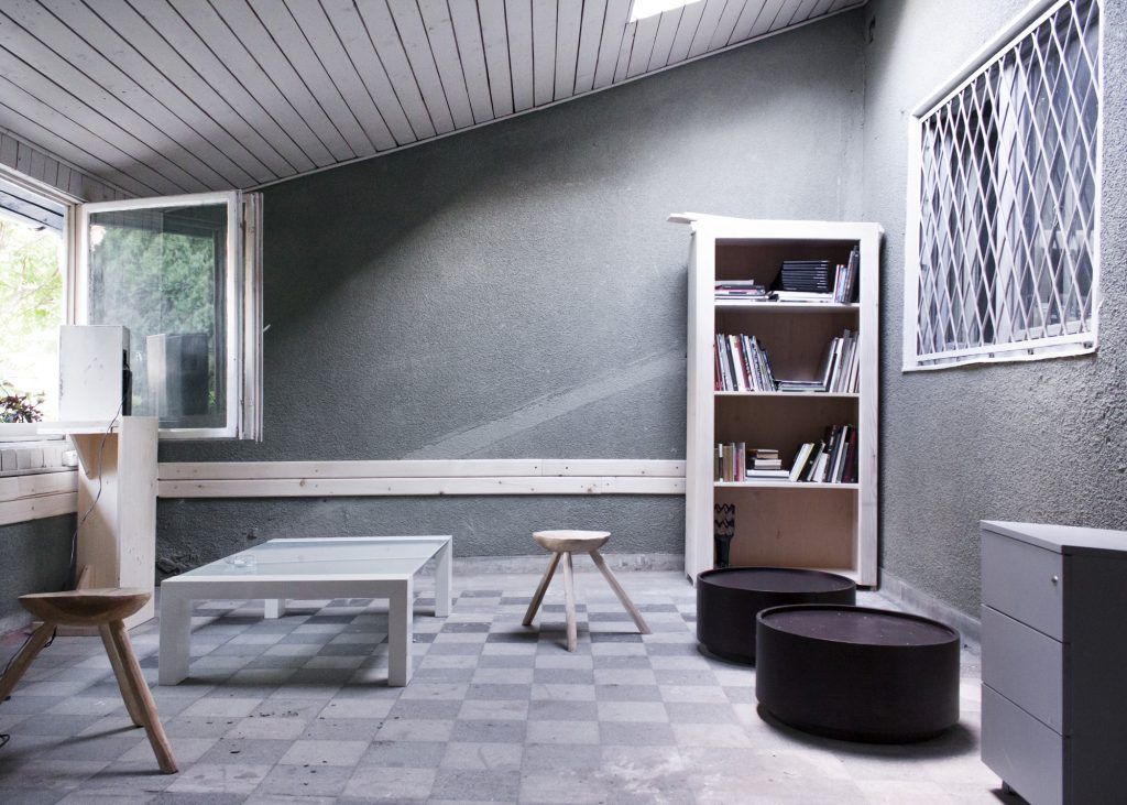 Eclectismul mentionat mai sus se reflecta cel mai mult in alegerea mobilierului. O parte din el fiind cumparat din magazine second-hand si reconditionat, o alta parte a pieselor de mobilier fiind primita de la Spazio Studio, iar printre acestea fiind inserate scaune clasice de gradina.