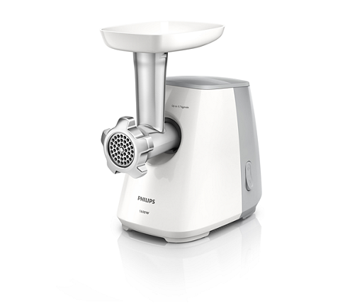O masina de tocat de la Philipsva toca pana la 1,7 kg de carne intr-un singur minut, pentru ca dispune de un motor cu putere superioara. Cutitul din inox si sitele de macinare sunt perfect igienice si ascutite, ajutandu-te sa obtii mereu produsul tocat, fara efort.