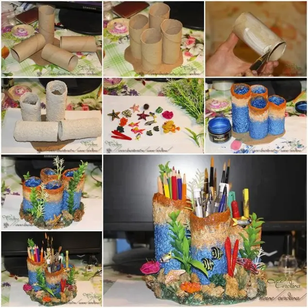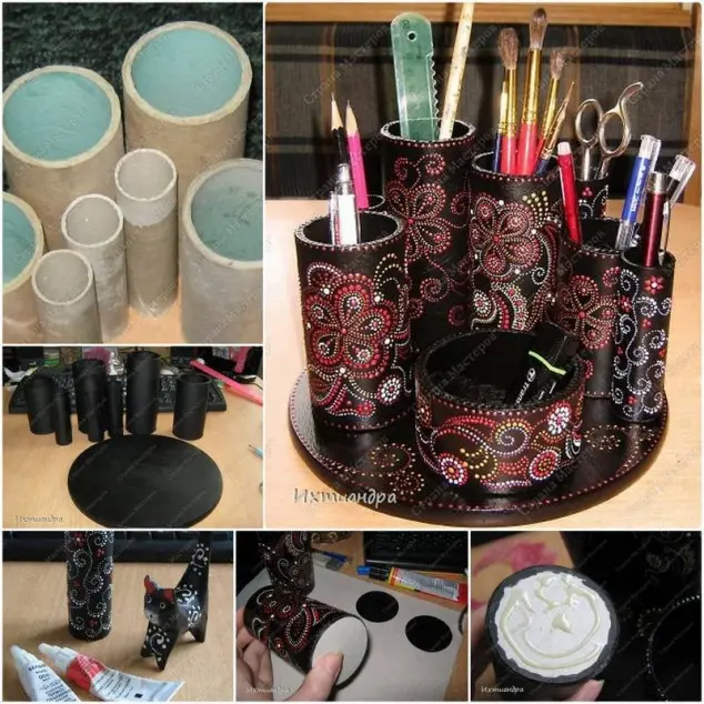 Munca de acasa va fi o reala placere, mai ales daca ti-ai facut singur decoratiunilesi spatiile de depozitare de pe birou, iar tot ce iti trebuie sunt hartii, cartoane de la hartia igienica, boluri, borcane si… desigur, lipici.