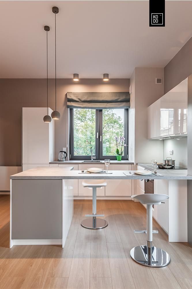 Intreaga amenajare porneste de la baza unei coloristici exprimate prin nuante de alb, gri si lemn natural. Punctul de interes este reprezentat de un spatiu deschis format din bucatarie si living, separarea celor doua incaperi facandu-se subtil prin intermediul unui mini bar cu rol practic, de pregatire sau servire a mesei.