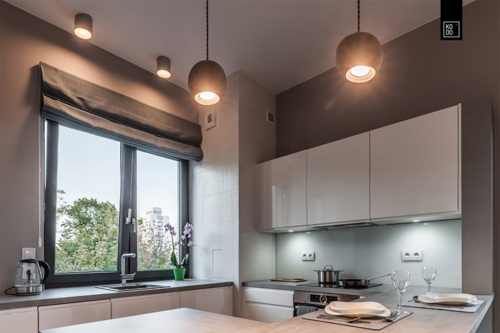 Lumina artificiala isi face simtitia prezenta foarte subtil, corpurile de iluminat exprimandu-se discret si lasand loc luminii naturale sa abunde.