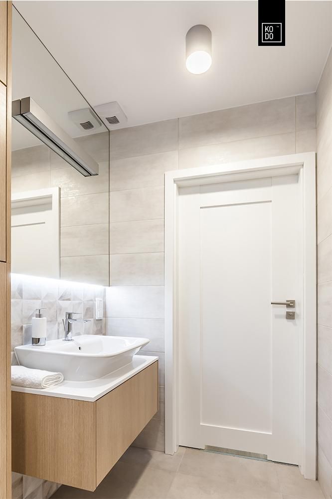 Minimalismul componentelor sanitare, a oglinzii de mari dimensiuni si a benzilor de led pozitionate deasupra lavoarului si in zona cabinei de dus, dau o nota moderna baii.