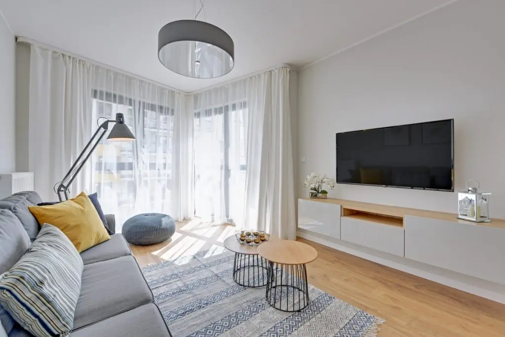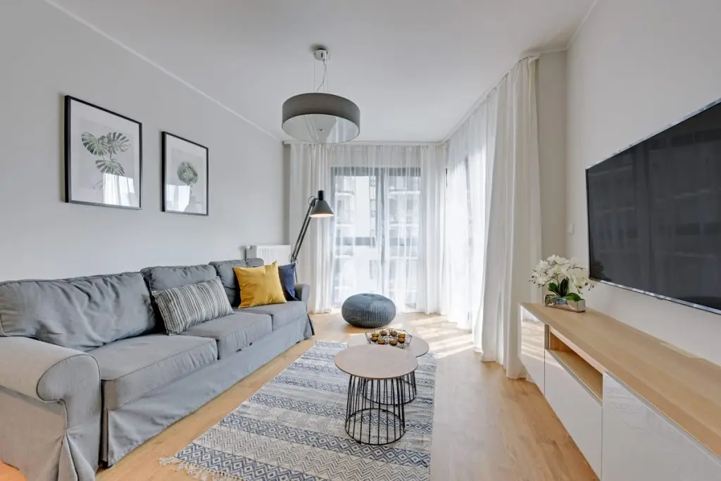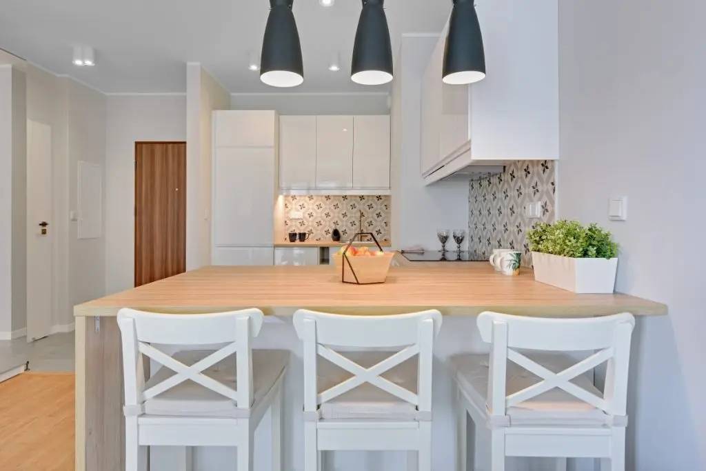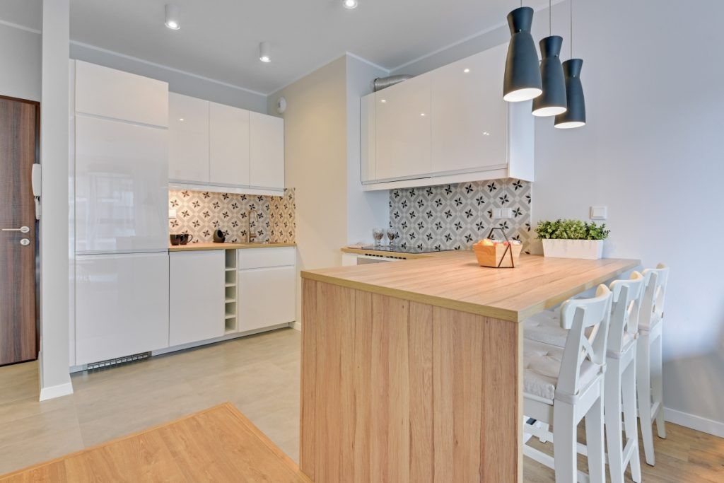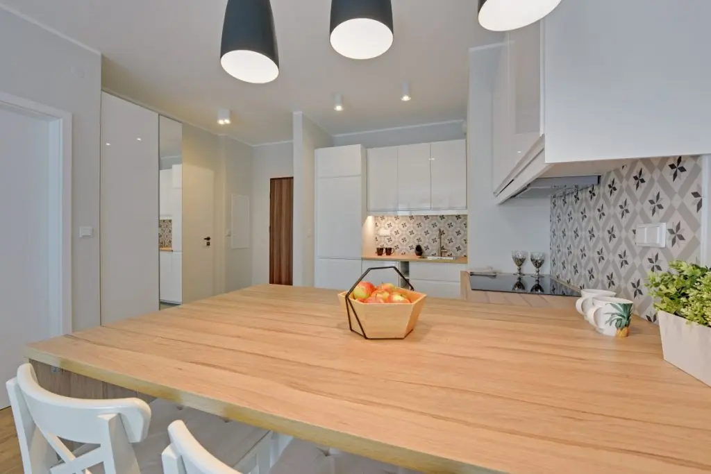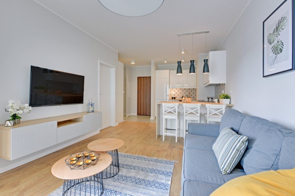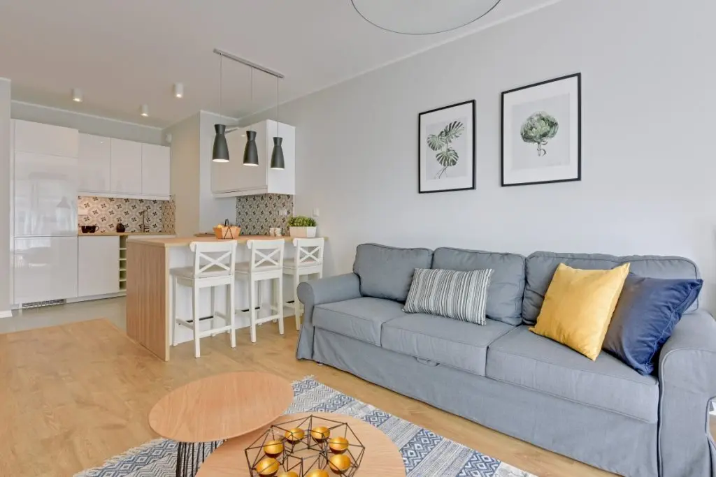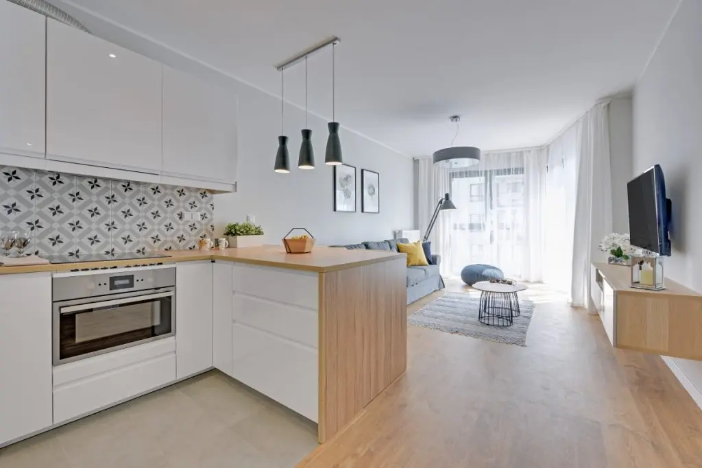 Plina de luminozitate si cu un aer fresh. Asa se infatiseaza aceasta amenajare care isi propune sa modifice spatiul unui apartament cu doua camere, atat din punct de vedere practic, cat si estetic, folosind metodele de transformare ale stilurilor minimalist si scandinav. Living-ul si bucataria formeaza un spatiu deschis, prezentat inca de la pasirea in apartament.