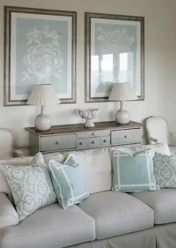 Albastrul pal sau bleu si griurile neutre pot fi combinate pentru a obtine o baza in amenajarea camerei. Se pot adauga astfel tonuri mai deschise de culori pentru un plus de veselie a spatiului, o atmosfera inviorata.