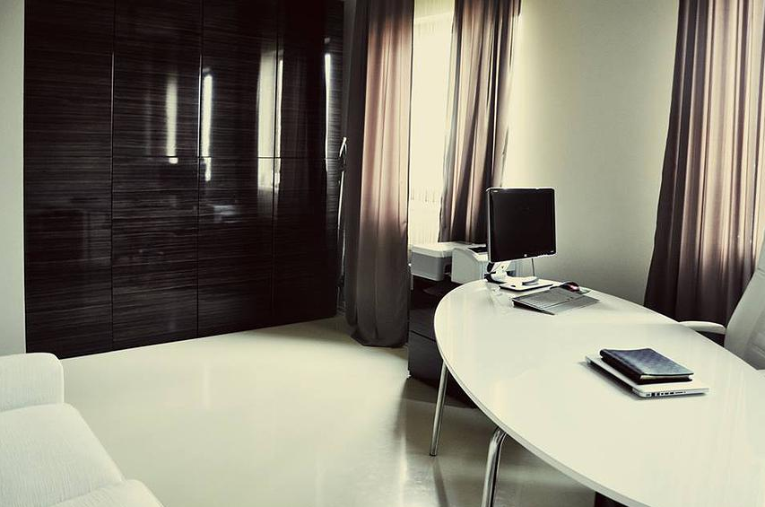 Cei de la Createlier au utilizat pentru aceasta amenajare materiale si finisaje moderne de cea mai buna calitate, care sa confere eleganta si o atmosfera extrem de placauta. Pentru a genera un efect vizual de spatialitate s-au folosit suprafete atent ales, atat pentru placarea peretilor cat si pentru mobilier.