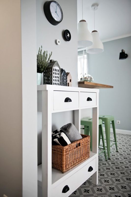 Griul, in diverse nuante reprezintabaza cromaticaa acestei amenajari pe care ulterior au fost crosetate si inserate accente de negru si tonuri de verde. Detalii acestea colorate personalizeaza acest apartament intr-un mod original. Le regasim la nivelul accesoriilor, decoratiunilor sau a electrocasnicelor din bucatarie.