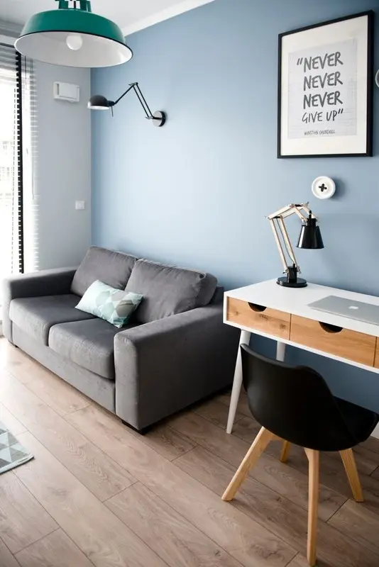 Spatiul este unul creativ cu detalii colorate in verde-menta si accente de negru sigri-albastru. Accentele de industrial predomina in intreaga amenajare, fiind imbinate cu note de modern si tuse de retro.