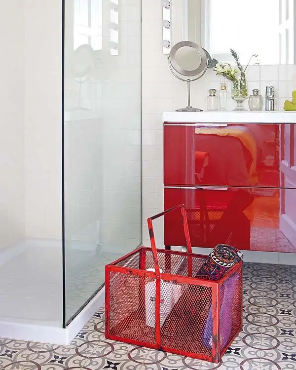 Dormitorul a fost amenajat de asemenea in spirit contemporan cu facilitatile unei incaperi-dressing si a baii aferente camerei. Aspectul functional este echilibrat de o compozitie ce cuprinde o comoda veche superba si o oglinda pe masura. Poate cea mai contemporana incapere a casei este baia, amenajata cu dus si lavoar modern, cu alb predominant si accente de rosu.