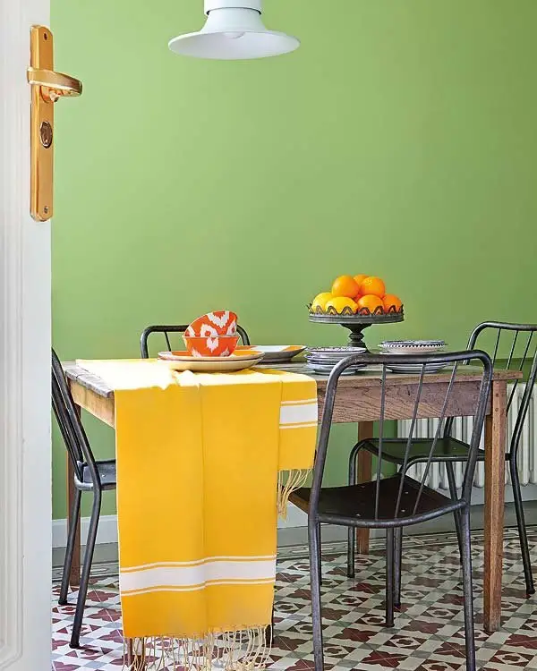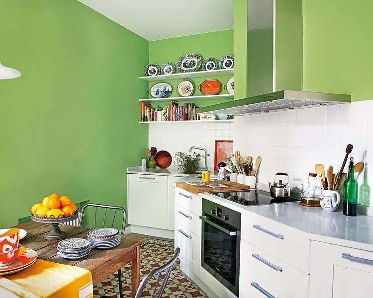 Alegerea de a zugravi cu verde o parte a bucatariei surprinde mai ales prin efectul wow creat.