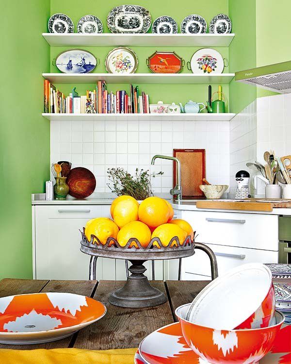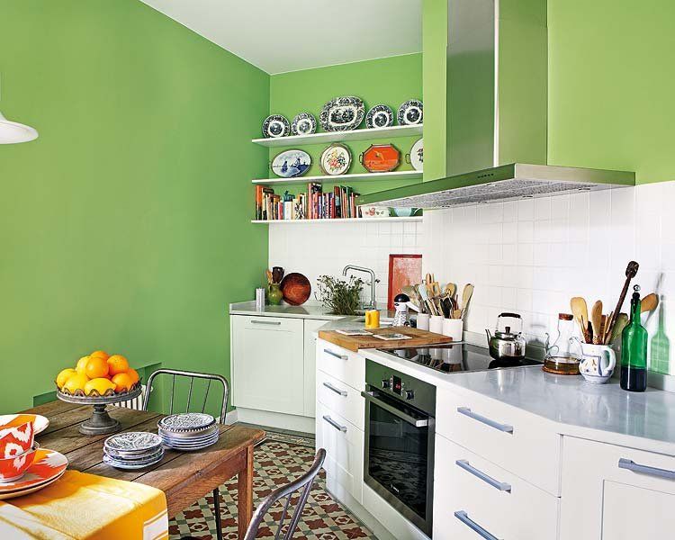 Alegerea de a zugravi cu verde o parte a bucatariei surprinde mai ales prin efectul wow creat.