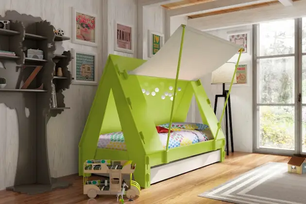 Unul dintre cele mai moderne lucruri pentru care poti opta cand vine vorba de paturile din camera copiilor este patul in forma de cort, care are un design complet inedit si atractiv, care va aduce zambetul pe buzele oricarui copil.