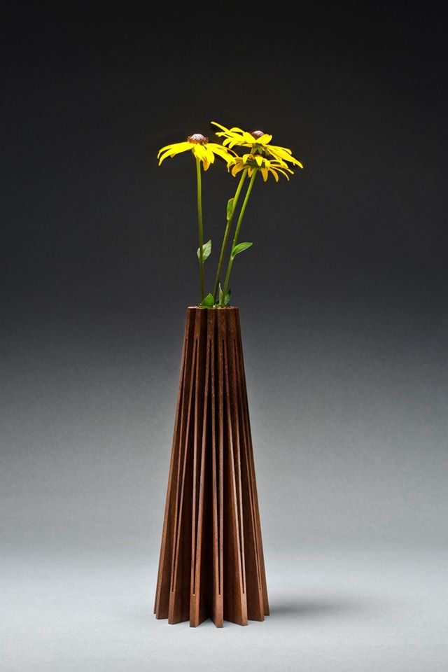 Fiecare vas este realizat dintr-o singura bucata de lemn , taiata intr-un model de acordeon si indoita intr-un cerc. Interactiunea de lumina si umbra intre aripioare accentueaza formele. Toate vasele sunt finisate cu ulei de in complet non toxic.