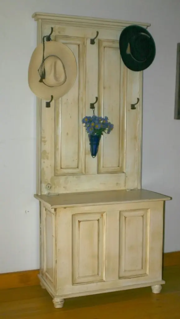 Foloseste-te de usa veche pentru a crea un dulap pentru hol care sa incorporeze si un cuier, la fel ca in imaginea de mai sus.