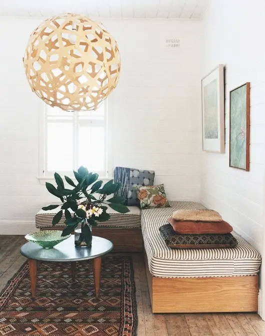 Daca ai visat mereu la o bancuta la fereastra, insa nu ai stiut cum sa faci, iata o idee pentru tine. Cu cateva scanduri poti realiza o platforma pe care sa pui multe perne decorative si sa faci din acest loc coltul tau de lectura preferat. Adauga si o masuta de cafea si vei putea sta de vorba ore intregi cu prietena ta.