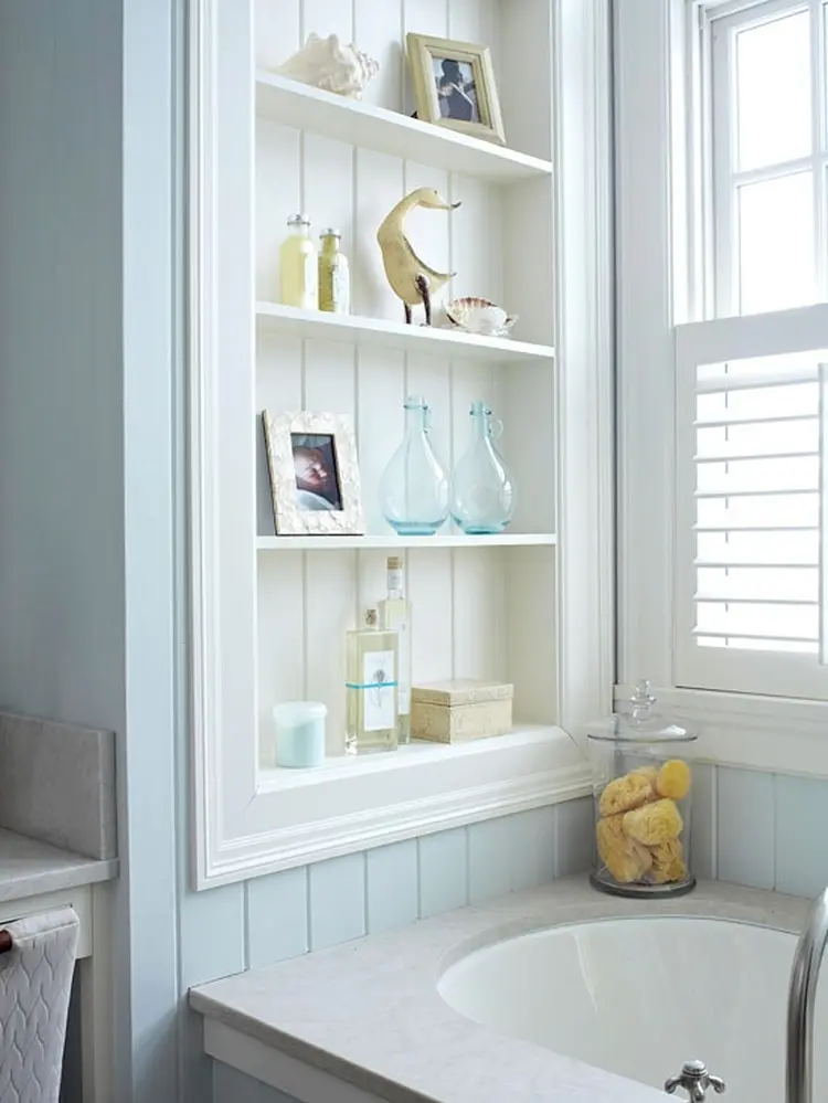 Baia este si ea o incapere care, de cele mai multe ori, nu permite asezarea altor corpuri de mobilier din lipsa de spatiu. Chiar si cateva obiecte de ingrijire si igiena sunt greu de depozitat. Iata cum poti sa le organizezi pe niste rafturi incastrate in perete.