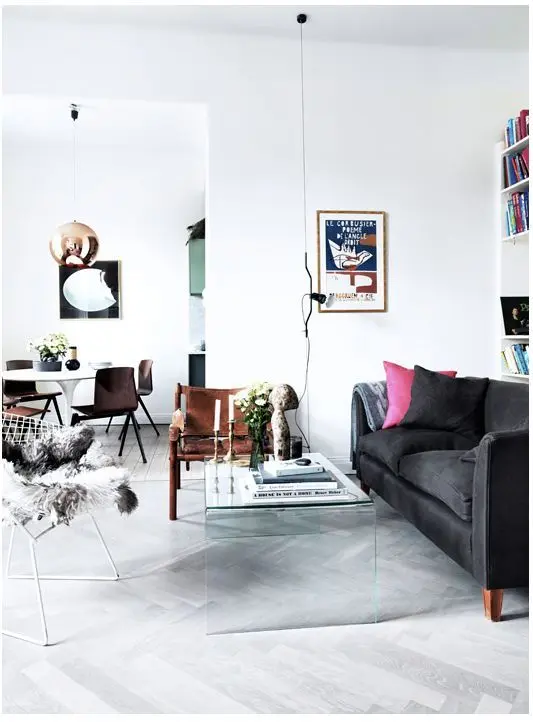 Mobilierul transparent o masuta de cafea perfect integrata in decorul camerei; este aproape invizibila, sprijinand un spatiu mai aerisit si luminos