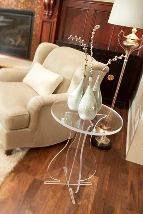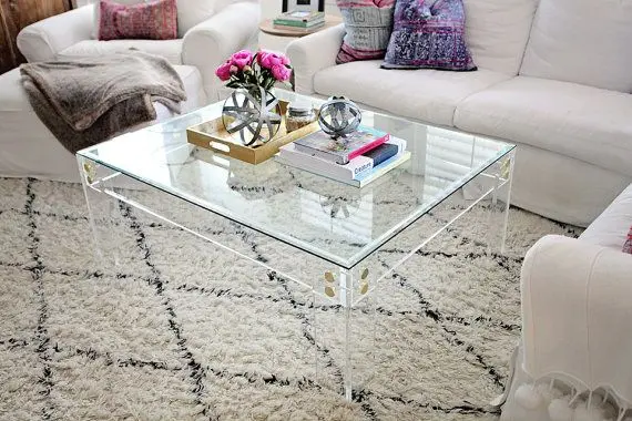 Mobilier transparent din plexiglas sub forma unei masute de cafea pentru un living luminos si spatios