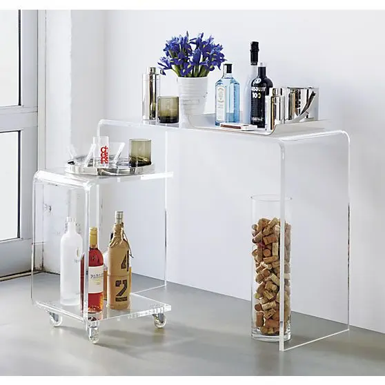 Mobilierul transparent masuta tip Adore din plexiglas folosita ca minibar
