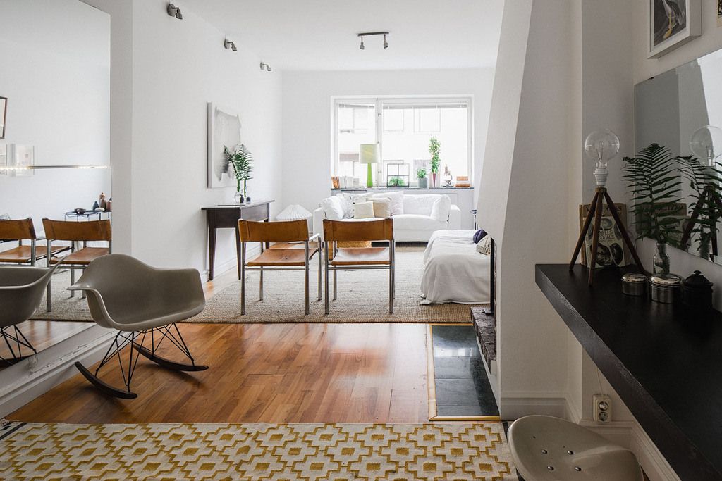 Desi o astfel de configuratie de apartament este mai rar intalnita, cateva idei de amenajare sunt intotdeauna binevenite. Avand 40 de metri patrati si o dispunere pe lungime, aceasta amenajare ne arata ca folosind spatiul intr-un mod inteligent, poti decora cu succes si o locuinta cu o configuratie mai dificila.