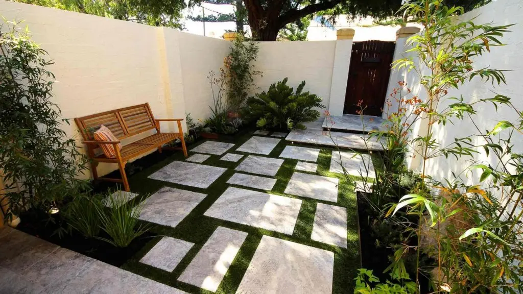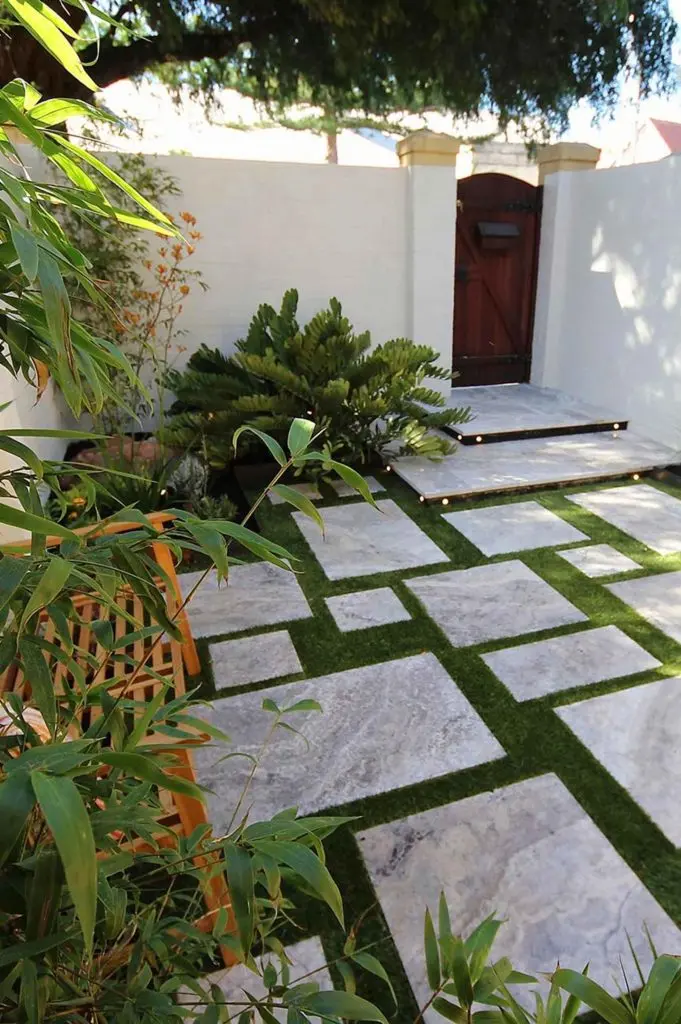 Placi de travertin imbinate cu gazon