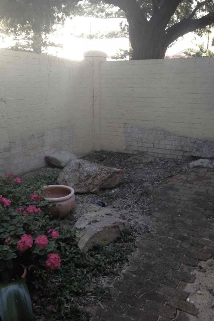 Elementele existente se aflau intr-o stare de degradare, iar pietrele aduse pentru a stabiliza solul nisipos nu erau de foarte mare ajutor. Nici pavelele nu aratau prea bine – o renovare totala era absolut necesara pentru a improspata tot aceasta zona de exterior.