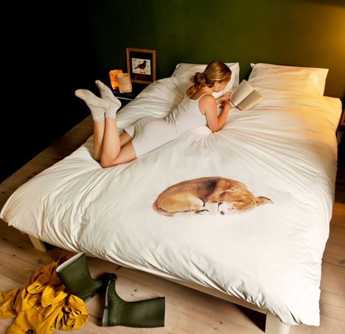 Daca ti-ai dorit mereu un animal de companie, dar niciodata nu ai avut ocazia, ai sansa de cumpara cel mai apropiat lucru: Un cearceaf cu un caine care doarme la picioarele tale.