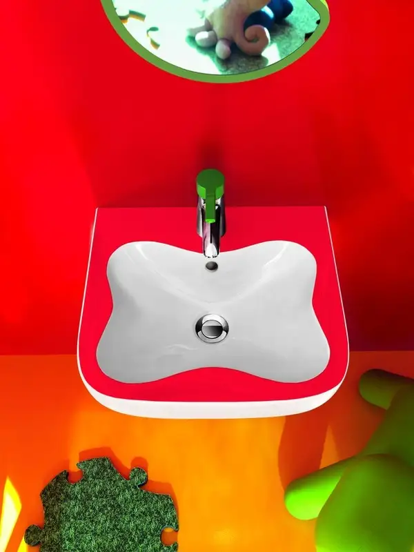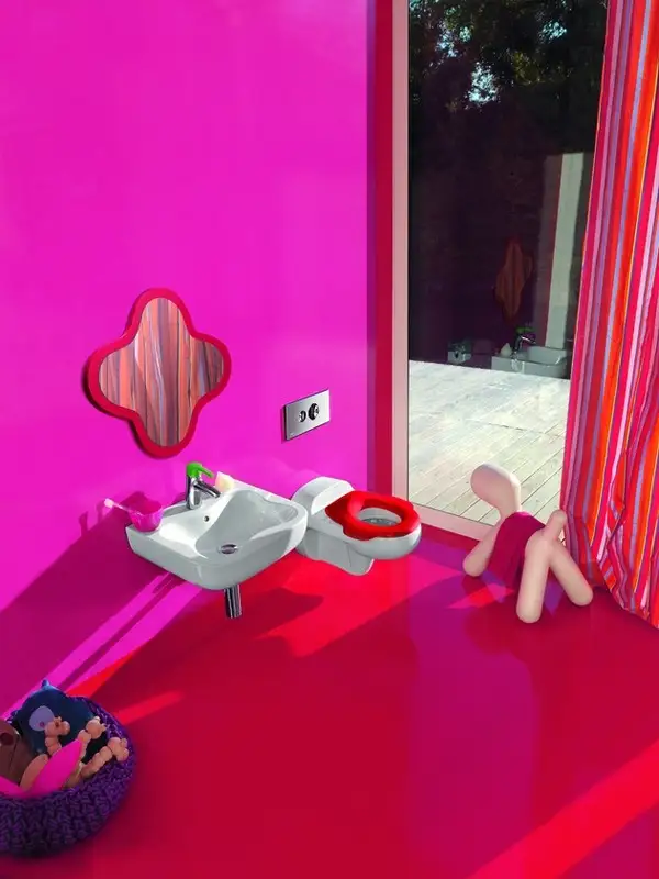 Designerii de la Laufen au creat bai originale, jucause si pline de culoare, toate pe placul copiilor. O astfel de amenajare are avantajul ca poate fi realizata si in baile mici din apartamente, spatiul necesar fiind minim.