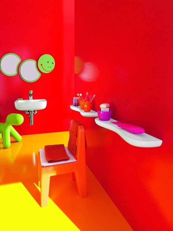 Copiii sunt atrasi de culori; rosu, galben, portocaliu, albastru sau verde se numara printre acele variante pe care le putem folosi cu usurinta in designul camerei si chiar in cel al baii lor.