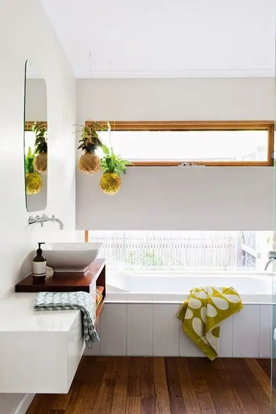 Fereastra in baie este un vis pentru multi din cei care locuiesc in acest moment in apartamente fara aceasta facilitate. Pentru voi am gasit un design inedit de fereastra cat tot peretele dar cu o portiune pe mijloc care blocheaza privirile indiscrete.