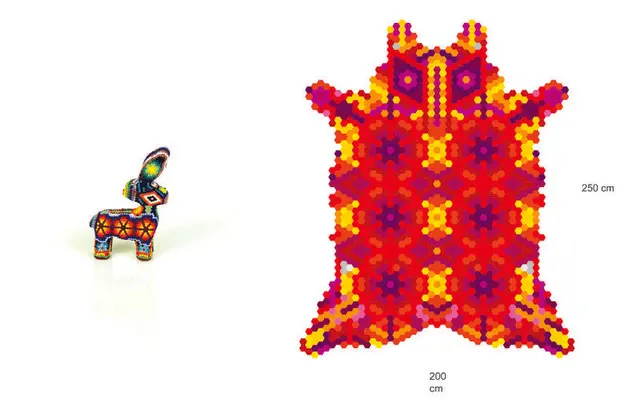 Deschide GaleriaTiparul de covor realizat de Elissa Medina si inspirat din triburile amerindienilor Huichol din Sierra Madre (partea de centru si de vest a Mexicului), este exact acea pata de culoare care se integreaza bine si intr-o casa amenajata clasic, dar arata excelent in orice concept modern in care ar putea fi integrat.