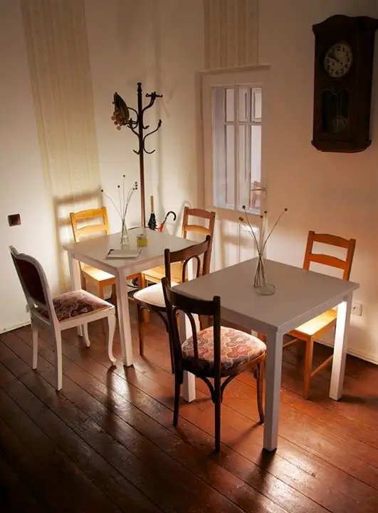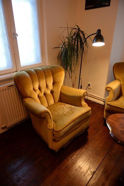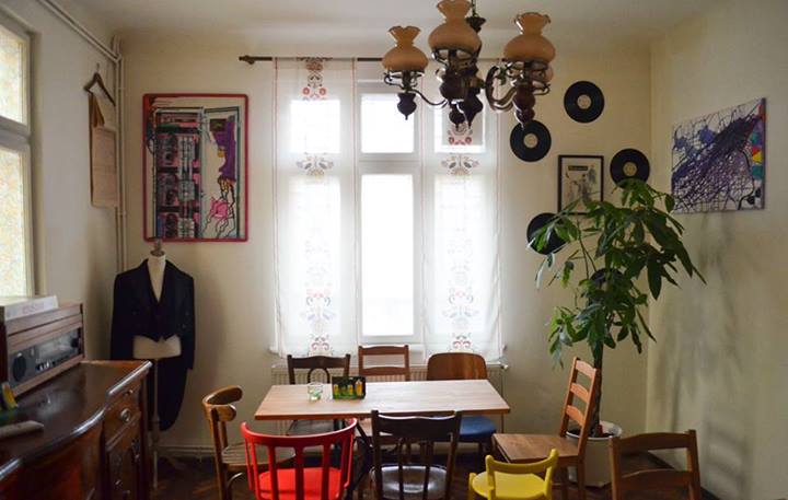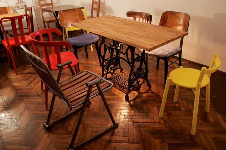 La interior veti gasi masini de cusut vechi care acum sunt mese, la care tinerii se aseaza seara de seara, candelabre handmade din umerase de haine, baile sunt decorate cu decupaje din reviste vechi de croitorie, accesorii si decoratiuni handmade care toate tin de arta cusutului, panouri cu nasturi, manechine etc.