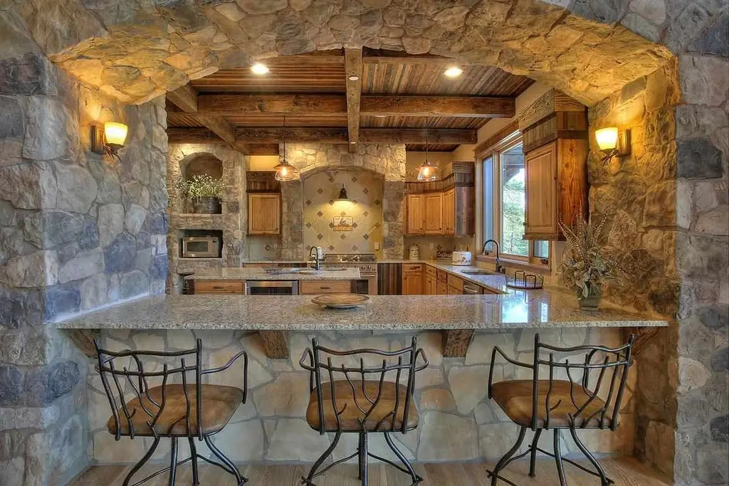 Piatra expusa este inca o tendinta ce a luat avant in amenajarea multorbucatarii moderne. Aspectul sau nefinisat imprima ambientului o tenta rustica asumata, ce contrasteaza cu tehnologia ultra-moderna.