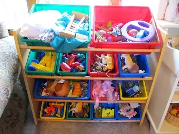 Si alte recipiente din casa pot fi folosite drept spatii de depozitare. Vasul pe care il folosesti la spalat, poate fi si el o metoda eficienta si chiar foarte ieftina de a stoca jucariile.