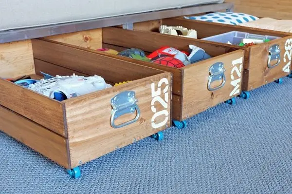 Exista si solutii practice care ne vin in ajutor. Creati in camera copiilor un sertar sau mai multe sertare destinate stocarii jucariilor. Daca copiii au varsta potrivita ii puteti chiar implica si pe ei in aceasta activitate. Astfel si le vor aranja dupa preferintele lor. Pentru a le fi mai usor celor mici sa acceseze jucariile, inlaturati partea din fata a sertarului, lasand doar o mica portiune ridicata pentru a preintampina caderea jucariilor. Puteti chiar sa si vopsiti interiorul in culori vesele.